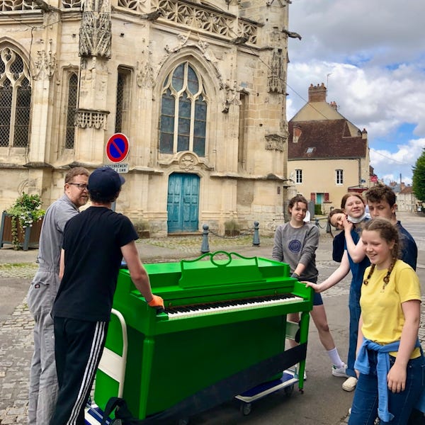 In addition to the family vacation, we tackled some big projects at home, like finishing the herringbone pattern brick floor in the dining room of the Tall House (the house in France we’ve been renovating), and moving from the rental house into the Tall House. The move included rolling our green piano down the street of our little town!